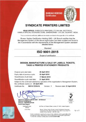 ISO 9001-2015 Syndicate Printers Limited