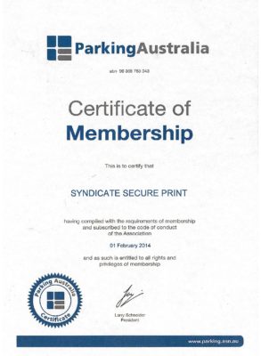 Parking Australia – Membership Certificate 2014